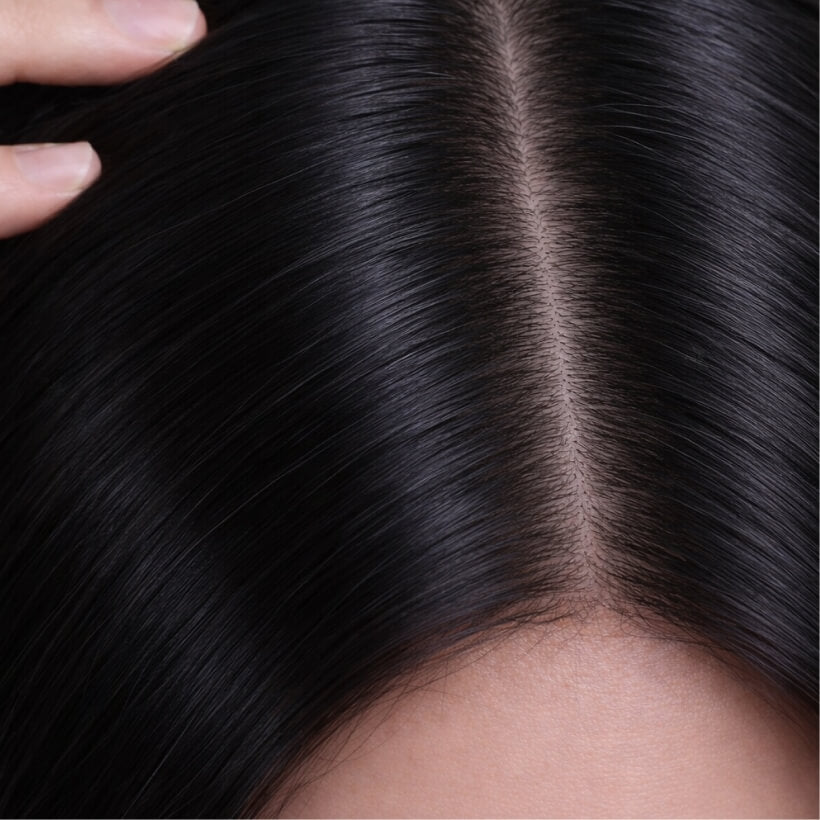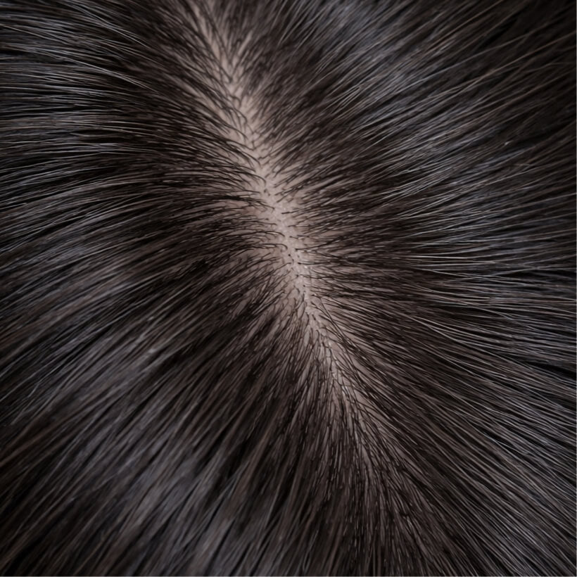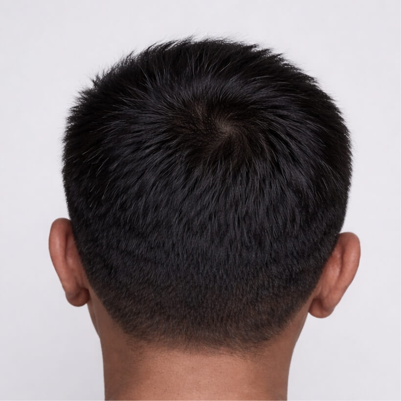 You have barely noticeable thinning: hairline mostly intact, maybe slight temple recession; overall density looks normal, visible only under magnification.